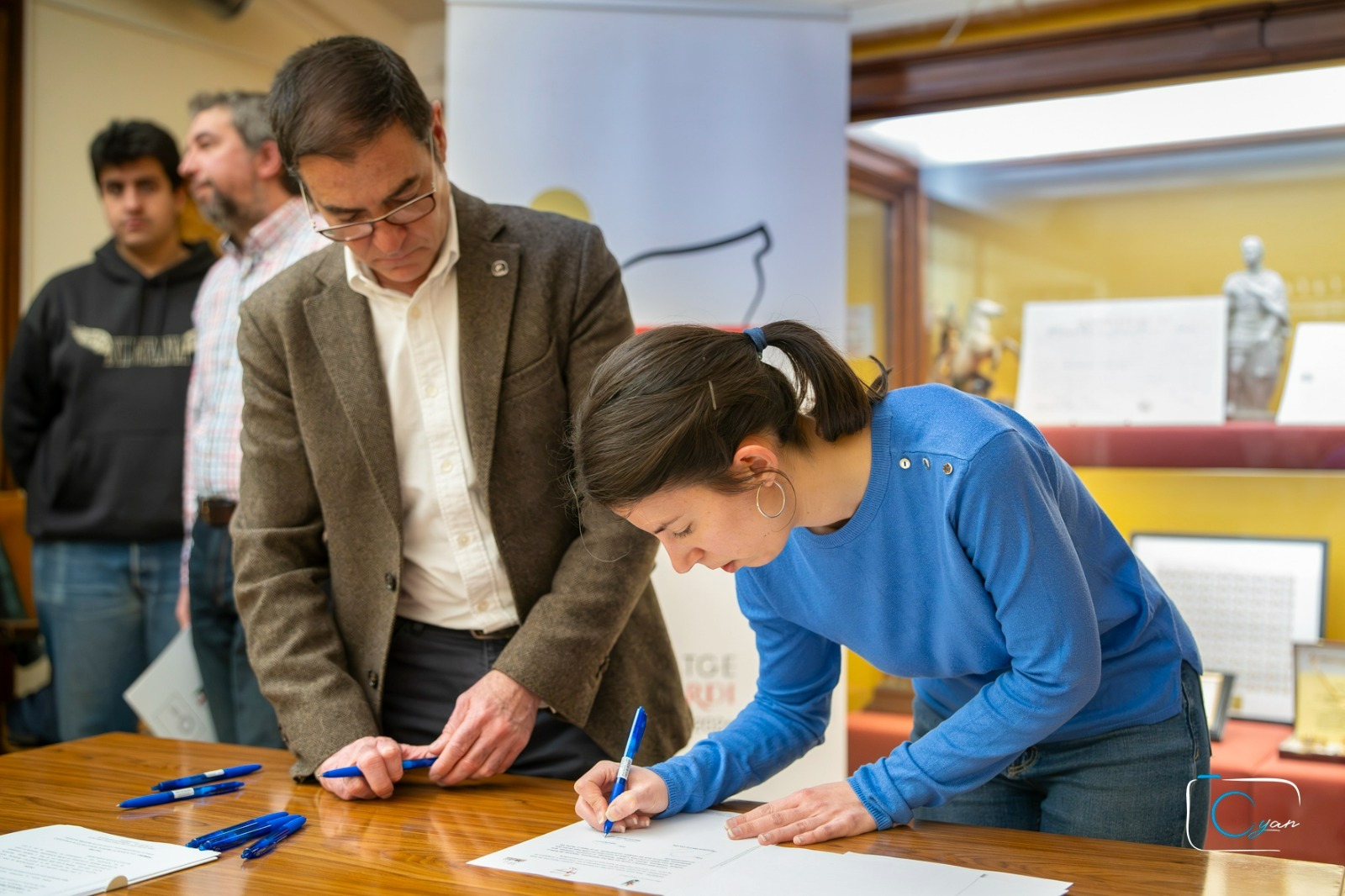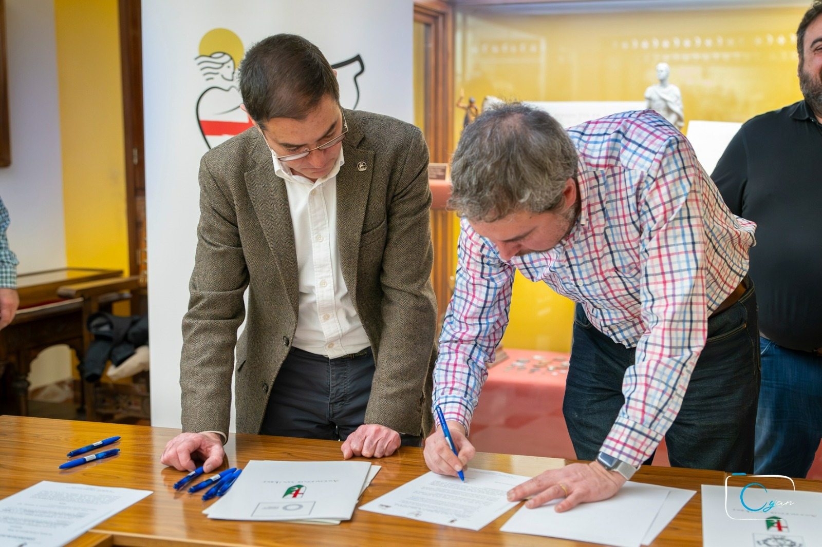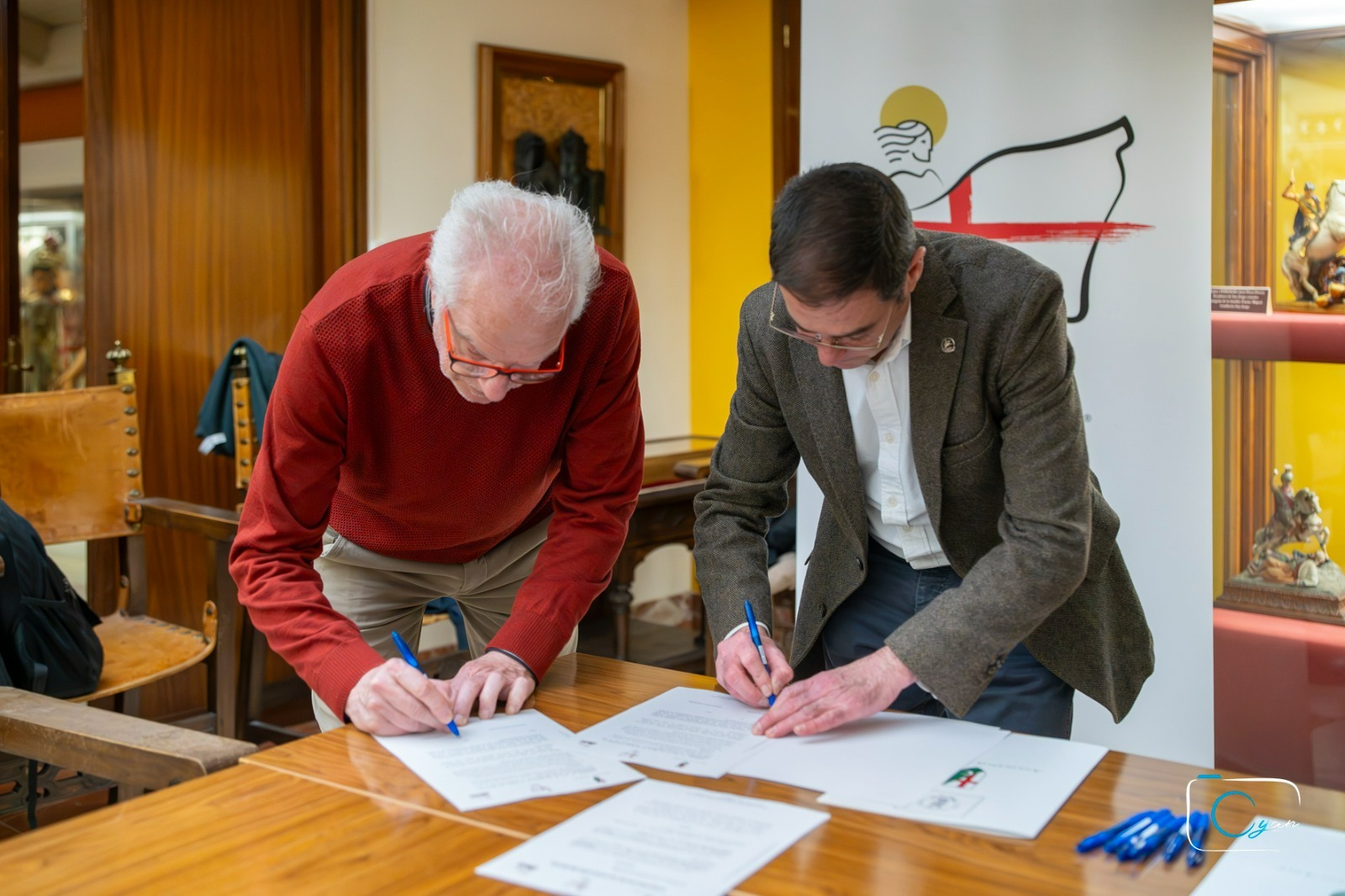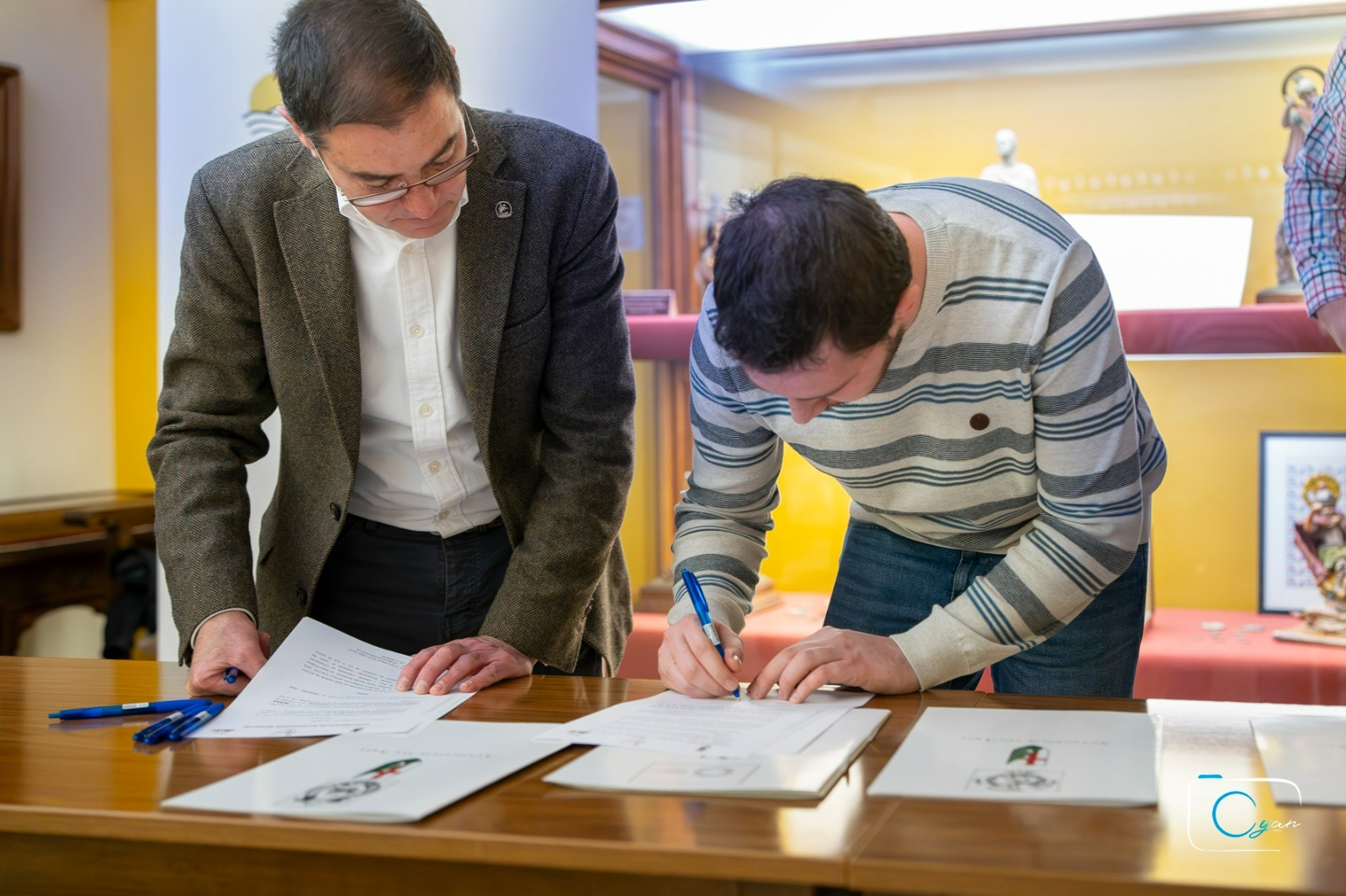 L’Associació de Sant Jordi ha celebrat l’acte protocol·lari de signatura dels contractes amb les societats musicals d’Alcoi que participaran en els actes de les pròximes festes de Moros i Cristians. Este encontre, que té lloc cada any abans del mes d’abril, formalitza la vinculació entre l’entitat festera i les agrupacions musicals que acompanyaran els actes festers i la trilogia georgiana.